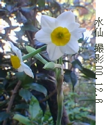水仙(すいせん)別名:ダッフォディル、金さん銀台、雪中花僕のうちの庭で今咲いている花撮影 --- 写真:2000.12.6 このように育ててみました。 樹齢 --- 18年 環境 --- 庭植え 日当り - 日陰 土 ----- 赤土 肥料 --- 春先化成肥料1度 水 ----- 自然の雨 分類 --- ヒガンバナ科スイセン属 原産地 - 地中海沿岸 特性 --- 冬は日当たり夏は日陰で肥沃で水はけのよい所を好む、 花言葉 --- 自己愛 備考 --- 在来種の水仙です。早々と咲きました。新しい年になる前に。 それでも、寒くなった頃の水仙は日本らしさの趣があり、気持ちを落ち着かせてくれます。 ご意見、ご感想を こちらのメ−ルで送ってください。 |