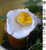 椿・玉の浦別名:僕のうちの庭で今咲いている花撮影 --- 写真:2000.12.9 このように育ててみました。 樹齢 --- 3年 環境 --- 鉢植え 日当り - 半日陰 土 ----- 鹿沼土主体 肥料 --- 春−夏液肥4−5度 水 ----- 普通 分類 --- ツバキ科ツバキ属 原産地 - 日本、中国、東南アジア 特性 --- 排水の良い半日陰を好む 花言葉 --- 紅色:気取らない優美さ、白色:魅力 備考 --- 白地に紅の斑が見事に掛かるあの優美な玉の浦です。しかし写真の花は白一色です。 3年前に挿し木したものですが、今年始めて1花が付ました。 それが、期待とはうらはらに、紅の斑が入っていません。 この写真を撮った明くる日に、開ききっていない写真の右上側部分が開き、そこにわずかながら紅色の小さい斑が見かけられました。 親株も、初年度頃は白が多く紅色の斑はあまり綺麗にかかりませんでした。 この挿し木株も、来年あたりは紅の斑も少しは大きく着いてくれることでしょう。 ご意見、ご感想を こちらのメ−ルで送ってください。 |