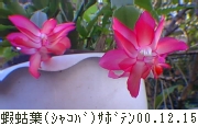 蝦蛄葉(しゃこば)サボテン別名:シャコサボテン、クリスマスカクタス僕のうちの庭で今咲いている花撮影 --- 写真:2000.12.15 このように育ててみました。 樹齢 --- 6年 環境 --- 鉢植え 日当り - やや良 土 ----- 鹿沼土主体 肥料 --- 春−秋液肥4−5度 水 ----- 普通、9−10月は控え目 分類 --- サボテン科ジゴカクタス属 原産地 - ブラジル 特性 --- 水はけを好む 花言葉 --- 備考 --- 今年は管理不行き届きで放うたからし状態でしたので、花数も20個くらいと少なくなっています。 しかし1個1個の花は見事で美しく咲いてくれました。 ご意見、ご感想を こちらのメ−ルで送ってください。 |