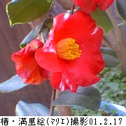 椿・満里絵(まりえ)別名:僕のうちの庭で今咲いている花撮影 --- 写真:2001.2.15 このように育ててみました。 樹齢 --- 2年 環境 --- 鉢植え 日当り - 半日陰 土 ----- 鹿沼土主体、赤玉土、腐葉土 肥料 --- 秋液肥1度 水 ----- 普通 分類 --- ツバキ科ツバキ属 原産地 - 日本、中国、東南アジア 特性 --- 半日陰の排水の良い所を好む 花言葉 --- 白色:申し分のない魅力、紅色:気取らない優美さ 備考 --- 2月5日に撮影した満里絵は花全体が赤一色でした。 その後に咲いた5−6個の花も皆全体が赤でした。 ところが、今回、赤に白の斑が入ったものが咲きました。 それで、同じ満里絵の花ですが今回再掲載しました。 全体が赤一色よりも、白の斑が入ったほうが深みを感じます。その白の斑の入り方が大変深みがあり感動的です。 ご意見、ご感想を こちらのメ−ルで送ってください。 |