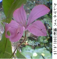 備考 --- 赤紫色のすばらしい花ですが、今年はやや小ぶりで色も鮮やかさが薄れています。木漏れ日で育てているせいのように思います。