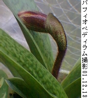 パフィオペディラム別名:僕のうちの庭で今咲いている花撮影 --- 写真:2001.12.13 このように育ててみました。 草齢 --- 2年 環境 --- 鉢植え 日当り - 半日陰 土 ----- 鹿沼土、赤玉土、腐葉土 肥料 --- 春〜秋に液肥4〜5度 水 ----- 普通 分類 --- ラン科パフィオペディラム属 原産地 - インド北部」〜東南アジア 特性 --- 半日陰〜日陰の湿地で水はけを好む 花言葉 --- 備考 --- 蕾が毎日のように成長しています。 購入後初の着蕾ですので、どんな花が咲くのか楽しみです。 春〜秋には、葉がいい感じで成長しました。 12月上旬にビニ−ル温室に入れました。 ご意見、ご感想を こちらのメ−ルで送ってください。 |