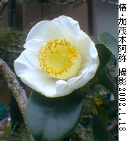 椿・賀茂本阿弥(かもほんなみ)別名:僕のうちの庭で今咲いている花撮影 --- 写真:2002.1.18 このように育ててみました。 樹齢 --- 2年 環境 --- 鉢植え 日当り - 半日陰 土 ----- 鹿沼土主体、赤玉土、腐葉土 肥料 --- 春〜秋に液肥5〜6度 水 ----- 普通 分類 --- ツバキ科ツバキ属 原産地 - 日本、中国、東南アジア 特性 --- 水はけ良い半日陰を好む 花言葉 --- 紅色:気取らない優美さ、白色:魅力 備考 --- 純白の清潔な花です。 太い筒しべの、白色一重、抱え〜椀咲き、中〜大輪の11〜4月咲きです。 葉は広楕円の大型です。 「本阿弥」は刀剣鑑定の家系で、始祖の妙本は足利尊氏のときの人ですが、この花の名はこの人の名に因んだのではなく、後の茶道を嗜んだ本阿弥光悦に因んだものと思います。 本阿弥光悦は蒔絵意匠を考案し、楽焼きにも秀でていたもようです。 いい花です。 ご意見、ご感想を こちらのメ−ルで送ってください。 |