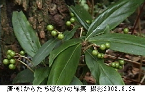環境 --- 鉢植え 日当り - 木漏れ日 土 ----- 鹿沼土主体 肥料 --- 春〜秋液肥4〜5度 水 ----- 普通 分類 --- ヤブコウジ科ヤブコウジ属、常緑小低木 原産地 - 日本等 特性 --- 花言葉 --- 備考 --- 春に咲いた白い花に緑色の小さな実が付き、徐々に大きくなりました。 8月下旬の今、ほぼ成果の大きさになりました。 もうすぐ、秋の気配が漂い始めると、黄色みを帯びてくるでしょうが、今はその直前の姿です。 花は万両の花とよく似ています。葉や木の感じも万両に似ています。 葉は万両よりも千両の方に似ているといえます。 この木は、「百両金」とも呼ぶようです。 江戸時代に大流行したようですが、現存する品種は少ないようです。 ご意見、ご感想を こちらのメ−ルで送ってください。 または、下の BOX 中にご記入下さい。 |