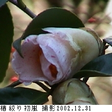 椿・絞り初嵐別名:僕のうちの庭で今咲いている花撮影 --- 写真:2002.12.31 このように育ててみました。 樹齢 --- 4年 環境 --- 鉢植え 日当り - 半日陰 土 ----- 鹿沼土主体 肥料 --- 春−秋液肥4−5度 水 ----- 普通 分類 --- ツバキ科ツバキ属 原産地 - 日本、中国、東南アジア 特性 --- 水はけ良い半日陰を好む 花言葉 --- 紅色:気取らない優美さ、白色:魅力 備考 --- 12月下旬に咲きました。昨年より約1ヶ月早く、一昨年と同じ時期の開花です。 極く薄いピンク色の地に赤の絞りが少し入ったおとなしい花です。 侘び助よりも少し大きめですが、茶花になる品のある花です。 今年は5〜6個の着花です。 top page へ |