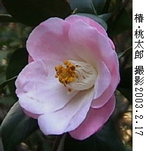 椿・桃太郎(ももたろう)別名:僕のうちの庭で今咲いている花撮影 --- 写真:2003.2.17 このように育ててみました。 樹齢 --- 3年 環境 --- 鉢植え 日当り - 半日陰 土 ----- 鹿沼土主体、赤玉土、腐葉土 肥料 --- 春〜秋に液肥5〜6度 水 ----- 普通〜やや多目 分類 --- ツバキ科ツバキ属 原産地 - 中国 特性 --- 半日陰と排水を好む 花言葉 --- 備考 --- 透き通るような桃色の春のい暖かさを感じさせてくれる花です。 蕾の時は優雅ですが、開花して2〜3日ごはあでやかな大輪となりました。 桃地に底白、八重、蓮華性、筒蕊の大輪です。 産地:福岡・久留米 top page へ |