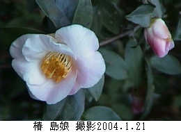 椿・島娘別名:僕のうちの庭で今咲いている花撮影 --- 写真:2004.1.21 このように育ててみました。 樹齢 --- 3年(親は6年) 環境 --- 鉢植え 日当り - 半日陰 土 ----- 鹿沼土主体 肥料 --- 春〜秋液肥4〜5度 水 ----- 普通 分類 --- ツバキ科ツバキ属 原産地 - 日本、中国、東南アジア 特性 --- 水はけ良い半日陰を好む 花言葉 --- 紅色:気取らない優美さ、白色:魅力 備考 --- 挿し木して3年目に開花しました。 薄い桃色の、何とも軟らかくふくよかで清楚な花だと思います。 少しうつむきかげんに咲くこの花の花名は、花の趣が娘さんそのものを表わすにふさしい花名だと思います。 ただし、アメリカの娘ではなく、日本の娘さんです。 top page へ |
