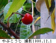 目立たないちっちゃい薄ピンクの花は大変かわいく思われます。6月頃咲いたその花が、今12月には写真のように赤い可愛いい実を結んでいます。