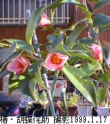 我が家の庭では、「秋の山」、「白侘び助」に次いで咲き始めた椿です。