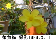 備考 --- 早春、梅の花と同時期に咲く形が梅の花に良く似た花です。つる性ですので枝垂れ梅のように高いところから垂れさせるのも良いかと思います。