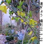 備考 --- 桜の花の咲く頃暖かそうに咲いてくれる濃い黄色の花です。群れて咲くのが見応えがあるのかも知れませんが、鉢植えで一枝に6−7個の花を付けた数枝を静かに眺めるのもまたいいものです。