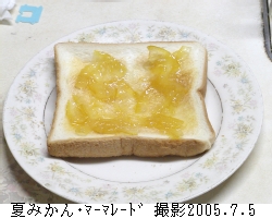 写真右: 食パンにぬった自作夏みかんの自作マ−マレ−ド: