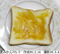 作成されたママレ−ドを食パンに付けて食すと、夏みかん特有のあの苦味があり、