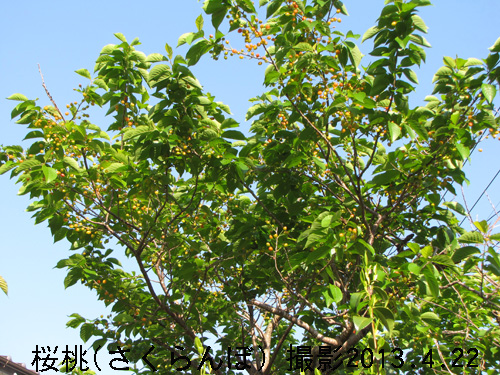 写真 --- 桜桃(さくらんぼ)・佐藤錦(さとうにしき) --- 2013.4.22, 29 撮影掲載:5月5日 このように育ててみました。樹齢 --- 28年 環境 --- 庭植え 日当たり やや良 土 ----- 赤土 肥料 --- 春先に化成肥料1度 水 ----- 自然の雨 分類 --- バラ科サクラ属 特性 --- 日当たりと水はけの良いやや冷涼な場所を好む 備考 --- 赤いおいしそうな実を今年もまた沢山着けてくれてます。 その年の最初に熟れる果物です。 毎年、野鳥にほとんどすべてを食べられ、我が家で口にできるのはわずかです。 今年も完全に全部野鳥に食べられてしまいました。 写真は野鳥に食べられる前のまだ完全には熟れていない姿と、 ほとんどすべて食べられた後に、下の方にわずかに残っている様子のものです。 昨年は、隣の家で屋根や壁の工事をしていましたので、恐れてか、野鳥は寄りつきませんでした。 それで、赤く熟した綺麗なままを沢山収穫できました。 桜桃特有のやや酸っぱさと甘さの味がして、とっても美味しく生食できました。 もちろん食べきれず、ほとんど全てをジャムにしました。 毎朝のパン食も楽しみました。 今年は1個も口に入らないずくで終わりました。 |