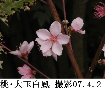 桃特有のやや赤味の掛った落ち着いた雰囲気の花です。