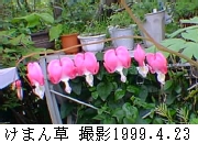 草齢 ----- 2年 環境 ----- 鉢植え 日当り ----4月まで午後日当たり、その後半日陰 土 ------- 鹿沼土主体 肥料 ----- 春−夏液肥4−5度 水 ------- 普通 分類 ----- ケシ科コマクサ属 多年草 特性 ----- 水はけの良い半日陰を好む 備考 ----- 姿が仏殿のけまんに似ていることからきた花名のようです。大変面白い姿の花だとおもいます。子供も喜びそうですね。