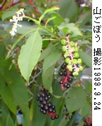 写真は丁度、白い花と緑の若い実と黒い熟した実が同時に付いている状態です。こんな状態が初夏から晩秋までつぎつぎと新しい枝が出て繰り返し続きます。