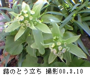 備考 ----- とうが出て食べ頃と思っている2−3日の内に、もう花が開きかけて食べられなくなります。