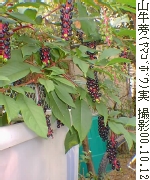 実の色は、緑色から赤を経て黒色に進行しますが、写真ではその途中の色の房もあります。