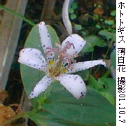 備考 ----- 真っ白ではありませんが、ややぼけたような薄白い花弁に青紫色の斑点が入った幽玄な趣を醸し出す花です。