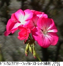 備考 ----- 多くの種類の中、この種のゼラニウムが好きなので、この種だけを育てています。赤の花びらの中に白い模様が入り、暖かく清潔そうな花です。