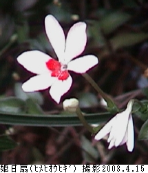 備考 ----- 赤花に対して、白に少し赤色の入った姫射干(姫日扇)です