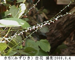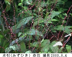 備考 ----- 暑い夏の陽光に輝く赤花と、夏風に涼しそうに揺れる清らかな白花の水引です。