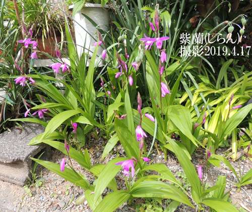 草齢 ----- 38年 環境 ----- 庭植え 日当り ----半日陰 土 ------- 赤土 肥料 ----- 春先に化成肥料1度 水 ------- 自然の雨 分類 ----- シラン科シラン属 多年草 特性 ----- 日当たり、日陰とも育つ 原産地 --- 日本、中国、台湾 花言葉 ---