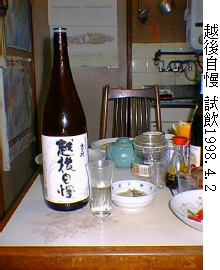 試飲時期 1998年3月 味わい やや辛口のいい酒だと思います。こういう酒が最近少なくなったと感じます。 最近は麹かびを強く利かせて、その上甘ったるくした酒が多いように思います。 この酒は20年前以前の2級酒の内のうまい酒を飲んでいるようなすばらしい酒の気持ちにさせてくれます。 醸造会社 吉乃川株式会社(新潟県長岡市摂田屋四町目八番十二号) アルコ−ル分 15 度 価格 一升瓶 確か1600円前後でした。