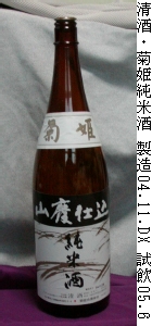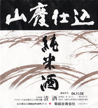 菊姫 山廃仕込・純米酒(石川県)製造年月 --- 平成16年(2004年)11月DX 試飲時期 --- 平成17年(2005年)6月 級 --------- 純米酒 アルコ−ル分 --- 16度以上17度未満 原材料名 --- 米・米こうじ 精米歩合 --- 70% 価格 ------- 3,161 ---> 2,529 円でした。 醸造会社 ---- 菊姫合資会社 石川県石川郡鶴来町夕ー8 味わい 当時のメモ ---常温:液体の色が黄色い。製造から7ヶ月経ったせいだろうか。この仕込みの特徴なのだろうか?。 レッテルに「..だからほんのり黄金色」とあり。 味はまあ本醸造的である。 製造日から半年たっているからか、やや古くなった味が少しする。 半年経った酒だと承知の上買ったのなだか仕方なかろう。 3161円の高価な酒が2529円で買えたのだから、 よしとせねばならぬだろう。 お金があれば、古くならないこの酒を味わってみたい。 燗:やはり古くなった味がするが、燗をしたら酒らしいアルコールの刺激は出た。 備考:製造から半年経っているから、上記価格のように2割安の割引になった。 しかし、この場合は買い損のような気がする。 |
