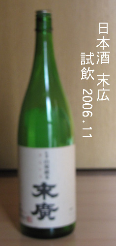 末広(すえひろ)(福島県)製造年月 --- 平成18年(2006年)9月 AE 試飲時期 --- 平成18年(2006年)11月 級 --------- 山廃純米 アルコ−ル分 --- 度以上 度未満 価格 ------- 一升瓶1,900円前後でした。 原材料名 --- 醸造会社 --- 末広酒造株式会社 福島県会津若松市日新町12-38 味わい 当時のメモ --- 常温: やや辛いが、昔流の酒の旨さあり。 日によっては、辛く感じたり、そうでもなかったり。 芳醇な味に近いもながある。 辛いというよりも苦い。 またある日は:甘うまい酒だ。飲み易い。米わらの麹かびの味がかすかにする。 燗: 適度に酒らしく旨く飲める。 やはり、苦い、びりびりと行くのがいい。 |