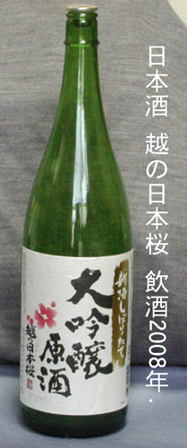清酒 越の日本桜(こしのにほんざくら)・大吟醸原酒(新潟県)製造年月: (2008年 月 日) 試飲時期: 2008(平成20)年2月 味わい 常温:原酒なのに芳醇ではないが、昔流のいい酒の味。 甘み、辛味どちらもあり丁度よい。 別の日:芳醇で旨い。もう一杯飲みたくなる。 燗: 常温同様丁度良い味。 常温に比してやや芳醇性が出たし、辛味甘み共に増してより旨くなった。 飲みよい。次々と飲み進めたくなる。 アルコ−ル分: 度以上 度未満 価格: 円 使用米(原料米): 原材料名: 製造方法: 精米歩合: % 日本酒度: 酸度: アミノ酸度: 酵母: 杜氏: その他 製造会社: 電話: FAX: ホ−ムペ−ジURL http://www. |