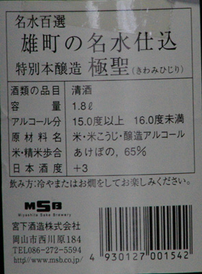 清酒 雄町・名水仕込(めいすいしこみ)(岡山県)