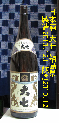 大七(だいしち) (福島県)製造年月 --- 平成22年(2010年)12月 試飲時期 --- 平成22年(2010年)12月 級 --------- 普通酒 アルコ−ル分 --- 価格 ------- 一升瓶(4種4本組 6,000 円)でした。 原材料名 --- 精米歩合 --- 日本酒度 --- 酸度 ------- 醸造会社 --- 大七酒造株式会社 福島県二本松市竹田1−66 TEL: 0243-23-0007 URL: http:// 味わい 当時のメモ ---常温:甘いからなのか口当たりが良い。僅かに芳醇性も感じる。 燗:苦辛味が出た。だから酒を飲んでいるという実感がする。備考: |