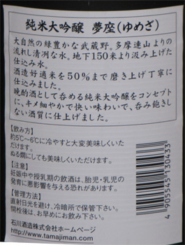 夢座(ゆめざ)・純米大吟醸(東京都)