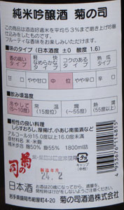 菊の司(きくのつかさ)・純米吟醸(岩手県)