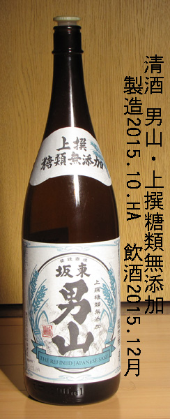 男山・上撰・糖類無添加(埼玉県)試飲時期 --- 平成27年(2015年)12月 級 --------- 上撰 アルコ−ル分 --- 15度以上16度未満 価格 ------- 一升瓶 1,080 円 でした。 原材料名 --- 米(国産)・米こうじ(国産米)・醸造アルコール 精米歩合 --- % 日本酒度 --- 醸造会社 --- 株式会社 小山本家酒造 さいたま市西区大字指扇1798番地 この酒造会社のホームページ --- 味わい 当時のメモ ---常温: 以前の1,2級酒の味だが。その中では上等な味。辛味がかなりあり、僕には丁度良い辛味。 辛味の後甘味が口内に広がって行く。深く品のある味だ。 糖類無添加なのでなのか、自然ないい甘味だ。しかし飲む日によっては、 不自然な糖類の味がすることがある。 燗: 常温同様だ。何となくスイスイ飲める。値段の割には、お買い得のいい酒だ。 備考: |
