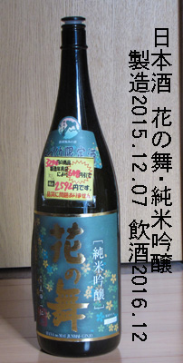 花の舞(はなのまい)・純米吟醸(静岡県)製造年月 --- 平成27年(2015年)12月07日 試飲時期 --- 平成28年(2016年)12月 級 --------- 純米吟醸 アルコ−ル分 --- 16度以上17度未満 価格 ------- 一升瓶 3,240円が 2,592円でした。 原材料名 --- 米(静岡県産)・米こうじ(静岡県産米) 精米歩合 --- 55% 日本酒度 --- +1.5 醸造会社 --- 花の舞酒造株式会社 静岡県浜松市浜北区宮口632 ↓↓↓ 味わい 当時のメモ ↓↓↓常温:大変美味しかったからかメモし忘れました。ただし、製造後1年も経つのに美味しかった、 というのは覚えています。 上記価格の項にあります様に、製造後1年も経て いますので、648円引きと、安く購入できました。 右写真の瓶にもその割引票が貼られています。 燗: |