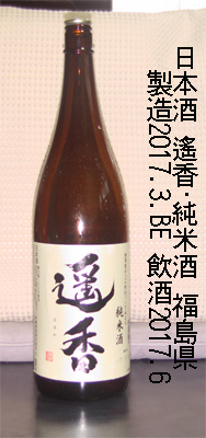 遙香(はるか)・純米酒(福島県)製造年月 --- 平成29年(2017年)3月BE 試飲時期 --- 平成29年(2017年)6月 級 --------- 純米酒 アルコ−ル分 --- 16度 価格 ------- 一升瓶 2,376 円でした。 原材料名 --- 米(国産)・米こうじ(国産米) 精米歩合 --- 65% 日本酒度 --- 酸度 ------- アミノ酒度 - 醸造会社 --- 末廣酒造株式会社 福島県会津若松市日新町12-38 ↓↓↓ 味わい 当時のメモ ↓↓↓常温:この純米酒、すばらしい味がする。この味はこれまでにも何度か味わったけど、 何という味と言えばいいのか、刺激的でもなく、芳醇でもなく、 脳にいい味を感じさせる。 甘ったるくふくよかな刺激はいい感じ。 燗:常温同様、美味しくどんどん飲める。備考: |