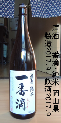 一番滴(しずく)・極聖(きわみひじり)純米酒(岡山県)製造年月 --- 平成29年(2017年)9月 試飲時期 --- 平成29年(2017年)9月 級 --------- 純米酒 アルコ−ル分 --- 15.0度以上16.0度未満 価格 ------- 一升瓶 1,934 円でした。 原材料名 --- 米(国産)・米こうじ(国産米) 精米歩合 --- 65% 日本酒度 --- 酸度 ------- 醸造会社 --- 宮下酒造株式会社 岡山市中区西河原一八四番地 TEL: 086-272-5594 ホームページ http://www.msb.co.jp/ ↓↓↓ 味わい 当時のメモ ↓↓↓常温:やや辛口のいい刺激のある旨い酒。燗:常温同様美味しく呑める。備考: |