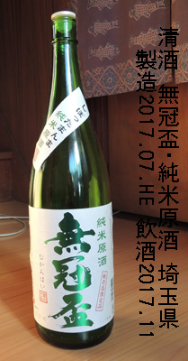 無冠盃・純米原酒(埼玉県)製造年月 --- 平成29年(2017年)07月HE 試飲時期 --- 平成29年(2017年)11月 級 --------- アルコ−ル分 --- 17度以上18度未満 価格 ------- 一升瓶 (20 % 引きで) 1,192 円でした。 原材料名 --- 米(国産)・米こうじ(国産米) 精米歩合 --- 82 % 日本酒度 --- 酸度 ------- 醸造会社 --- 株式会社 小山本家酒造 さいたま市西区大字指扇1798番地 ↓↓↓ 味わい 当時のメモ ↓↓↓常温:深い甘味があり、深い旨味がある。燗:常温同様、深い旨味がある。20 % OFF でなくても買い得だ。 備考: |
