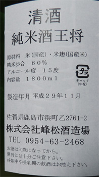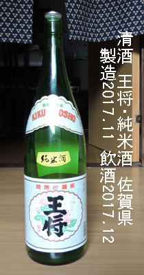 王将(OSHO)・純米酒(佐賀県)製造年月 --- 平成29年(2017年)11月 試飲時期 --- 平成29年(2017年)12月 級 --------- 純米酒 アルコ−ル分 --- 15度 価格 ------- 一升瓶 1,934 円でした。 原材料名 --- 米(国産)・米麹(国産米) 精米歩合 --- 60 % 日本酒度 --- 酸度 ------- 醸造会社 --- 株式会社 峰松酒造場 佐賀県鹿島市浜町乙2761-2 TEL: 0954-63-2468 ↓↓↓ 味わい 当時のメモ ↓↓↓常温:やや甘いが天酸っぱいよい刺激がある。アルコールの刺激ではない。 口当たりも良い。 燗:甘味旨味はそのままでやや辛味が増した。酒らしさも増した。 備考: |