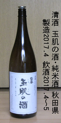 玉肌の酒(たまはだ)・純米酒(秋田県)清酒(日本酒)ではありませんが掲載してみました。製造年月 --- 平成29年(2017年)4月 試飲時期 --- 平成29年(2017年)4月〜5月 級 --------- 純米製 アルコ−ル分 --- 15度以上16度未満 価格 ------- 一升瓶 1,934 円でした。 原材料名 --- 米(国産)・米こうじ(国産米) 精米歩合 --- 65% 日本酒度 --- 酸度 ------- アミノ酒度 - 醸造会社 --- 秋田誉酒造株式会社 秋田県由利本庄市砂子下三 TEL: 098-985-2276 ↓↓↓ 味わい 当時のメモ ↓↓↓常温:いい意味での甘ったるい感じで、美味しく飲める。 何時でも美味しく飲めそう。 燗:常温同様旨い甘ったるさがある。常温よりも刺激がやや出た。 備考:酒名の「玉肌」って、どういう意味で付けたのだろうか。 |