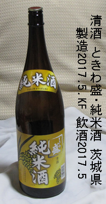 ときわ盛(ときわさかり)・純米酒(茨城県)製造年月 --- 平成29年(2017年)5月KF 試飲時期 --- 平成29年(2017年)5月 級 --------- 純米酒 アルコ−ル分 --- 14度 価格 ------- 一升瓶 1,934 円でした。 原材料名 --- 米(国産)・米麹(国産米) 精米歩合 --- 68% 日本酒度 --- 酸度 ------- アミノ酒度 - 醸造会社 --- 明利酒類造株式会社 (茨城県)水戸市元吉田町338 ↓↓↓ 味わい 当時のメモ ↓↓↓常温:いい米の香りのするような味。やや甘いが、何の抵抗もなく飲める旨い甘味。 燗:常温の旨い甘味。特別な特徴はない。 常温時よりも辛味が出て常温時よりもいい感じ。 備考: |