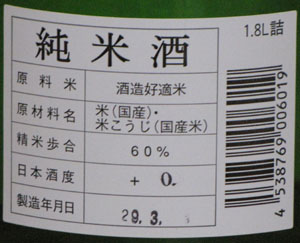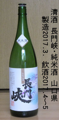 長門峡(ちょうもんきょう?)・純米酒(山口県)製造年月 --- 平成29年(2017年)3月 試飲時期 --- 平成29年(2017年)4〜5月 級 --------- 純米酒 アルコ−ル分 --- 15度以上16度未満 価格 ------- 一升瓶 約2,200 円でした。 原材料名 --- 米(国産)・米こうじ(国産米) 精米歩合 --- 60% 日本酒度 --- +0. 酸度 ------- アミノ酒度 - 醸造会社 --- 有限会社岡崎酒造場 山口県萩市川上464-1 ↓↓↓ 味わい 当時のメモ ↓↓↓常温:やや甘いが美味しく喉越しよく飲める。喉を越すときに旨味が通る。 旨味があり、芳醇性も多少ある。 燗:常温よりも甘くなったが、嫌みのない甘さだから、すうーすうーと呑める。 口内両端側に良い辛味が走る。 備考:この酒は、萩旅行に行った時に買ったものです。道の駅で買って、自宅へ送ってもらいました。 |