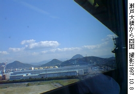 * 場所 : 瀬戸大橋上を走る特急列車の窓から四国にかなり近づいた所